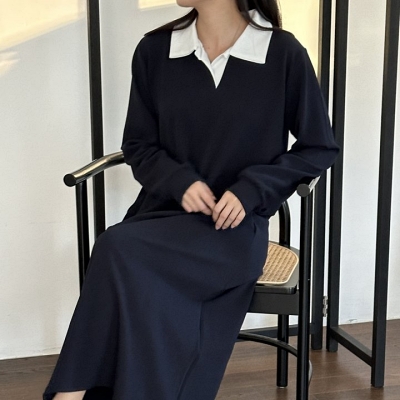 lu.카라배색롱원피스
