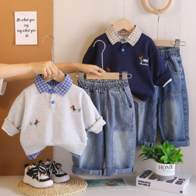 [빠른수입] 체크퍼피 찢청바지 셋