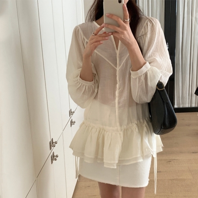 on.[BL668]시스루스트링캉캉블라우스