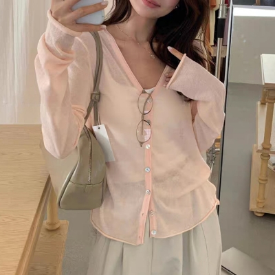 on.[CD634]린넨브이넥가디건