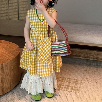 비다이어리.리시옐로우체크원피스